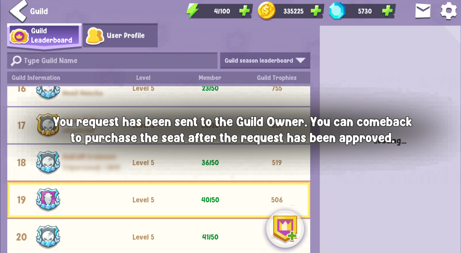 Players can request to join multiple guilds simultaneously, and upon approval, are provided with the option to purchase a seat from that guild or disregard the approval.